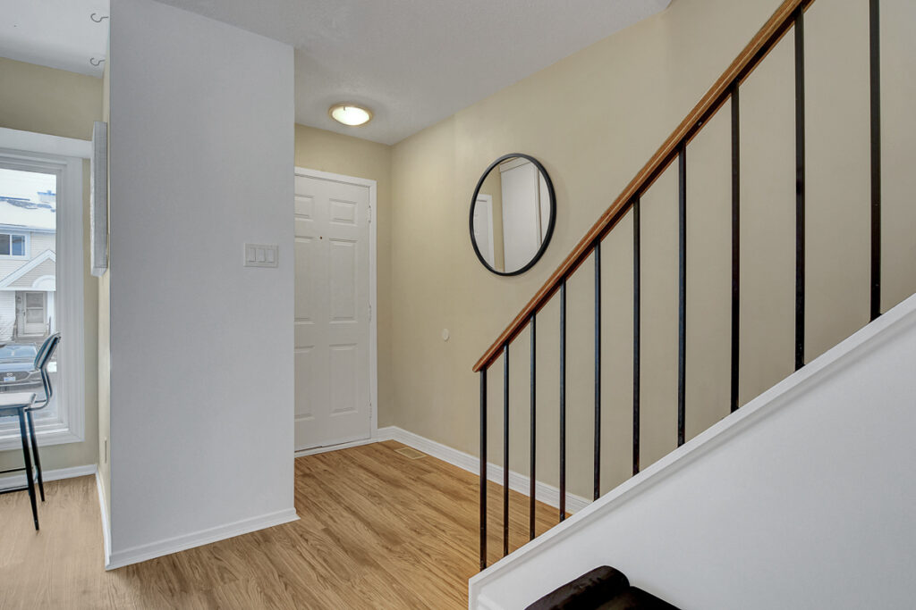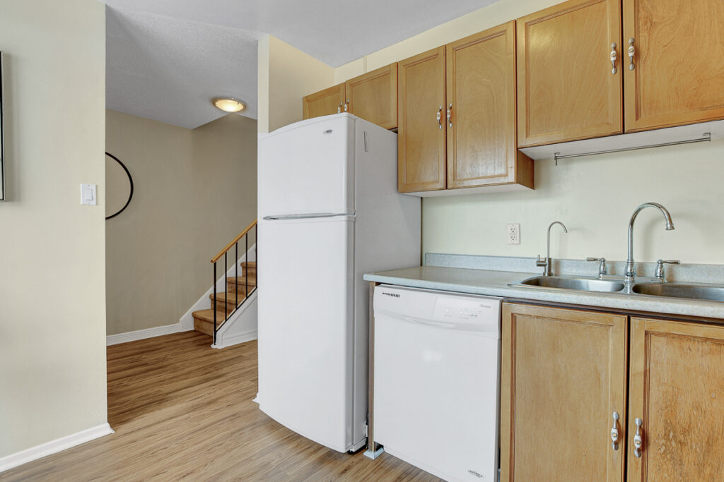 Bright, inviting, and full of possibilities in the heart of family-friendly Katimavik. This well-kept, low-maintenance condo townhome offers a spacious, thoughtfully designed layout with no carpet on the main or upper levels, creating an easy, comfortable living space for everyday life. The open-concept living and dining area is filled with natural light and anchored by a cozy wood-burning fireplace, perfect for relaxing evenings. Step outside to your private, fully fenced backyard, with no rear neighbours, backing onto the playground, a perfect spot for weekend BBQs, or just enjoying the outdoors. The sunny kitchen features ample cabinetry and a cozy eat-in nook, a cheerful spot to start your day with a coffee or a quick casual meal. Upstairs, you’ll find three generous bedrooms, including a spacious primary, plus a full bathroom, offering plenty of room for everyone. The finished lower level adds flexible living space with a bonus fourth bedroom-ideal as a home office, guest room, or hobby space-along with a recreation area, convenient 2-piece bathroom, laundry, and storage. Additional perks include parking right at your front door and a location close to schools, parks, transit, shopping, and recreation. Perfect for first-time buyers, investors, or downsizers, this home balances everyday comfort with the potential to make it truly your own in a welcoming, family-friendly neighbourhood.
