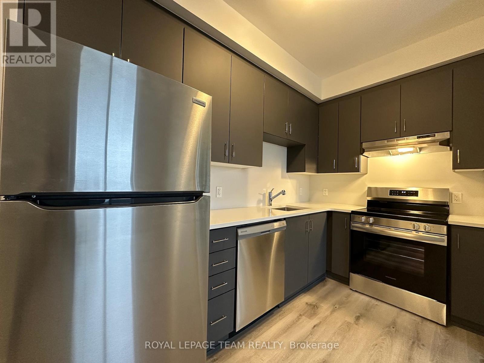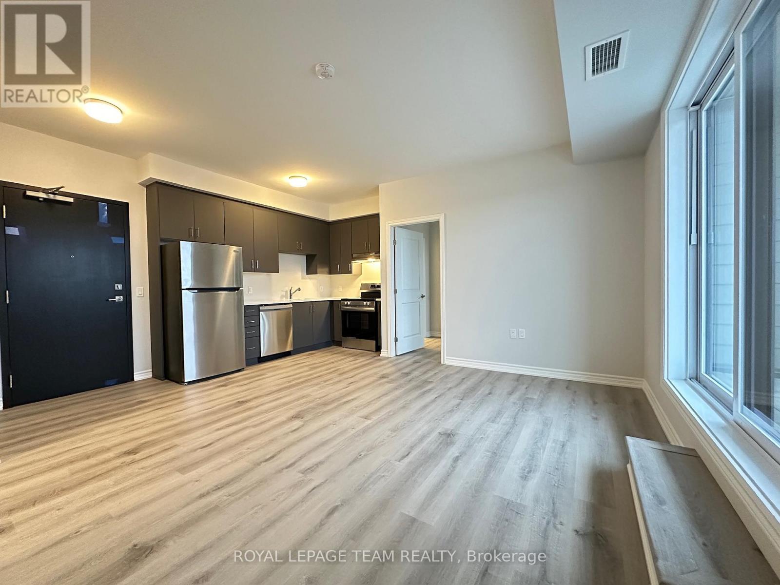 Step into stylish, low-maintenance living with this beautifully upgraded 2-bedroom luxury apartment by Mattamy Homes, perfectly situated in the highly sought-after Wateridge Village community. Featuring a modern combination of vinyl and ceramic flooring throughout, this home offers both comfort and functionality, complemented by the convenience of underground heated parking – a true bonus during Ottawa winters. One of the standout features is the oversized private terrace, offering serene views toward Gatineau Park and ample space for entertaining, or enjoying your own outdoor retreat. Inside, the bright open-concept layout is enhanced by expansive glass patio doors that flood the living and dining areas with natural light, creating a warm and inviting atmosphere. The contemporary kitchen is thoughtfully designed with sleek cabinetry, a chic backsplash, quartz countertops, and stainless steel appliances, including a microwave/hood fan combination, while upgraded lighting fixtures and modern vinyl flooring further elevate the home’s clean, stylish aesthetic. The spacious primary bedroom features a large window, a walk-in closet, and a private 3-piece ensuite, offering a comfortable and private retreat. The second bedroom is also generously sized, filled with natural light, and enjoys direct access to the shared bathroom, providing flexibility for guests, family members, or a home office setup. Additional highlights include a clean, private in-unit laundry area for everyday convenience. Ideally located next to Alliance Park and just minutes from downtown Ottawa, Montfort Hospital, and major employment hubs such as CSE, CSIS, and CMHC, this home also offers quick access to Blair LRT Station, Highways 174 and 417, Beechwood Village, St. Laurent Shopping Centre, and top private schools including Ashbury College and Elmwood School. Internet is included, making this an exceptional opportunity for modern, connected urban living. (id:13118)
